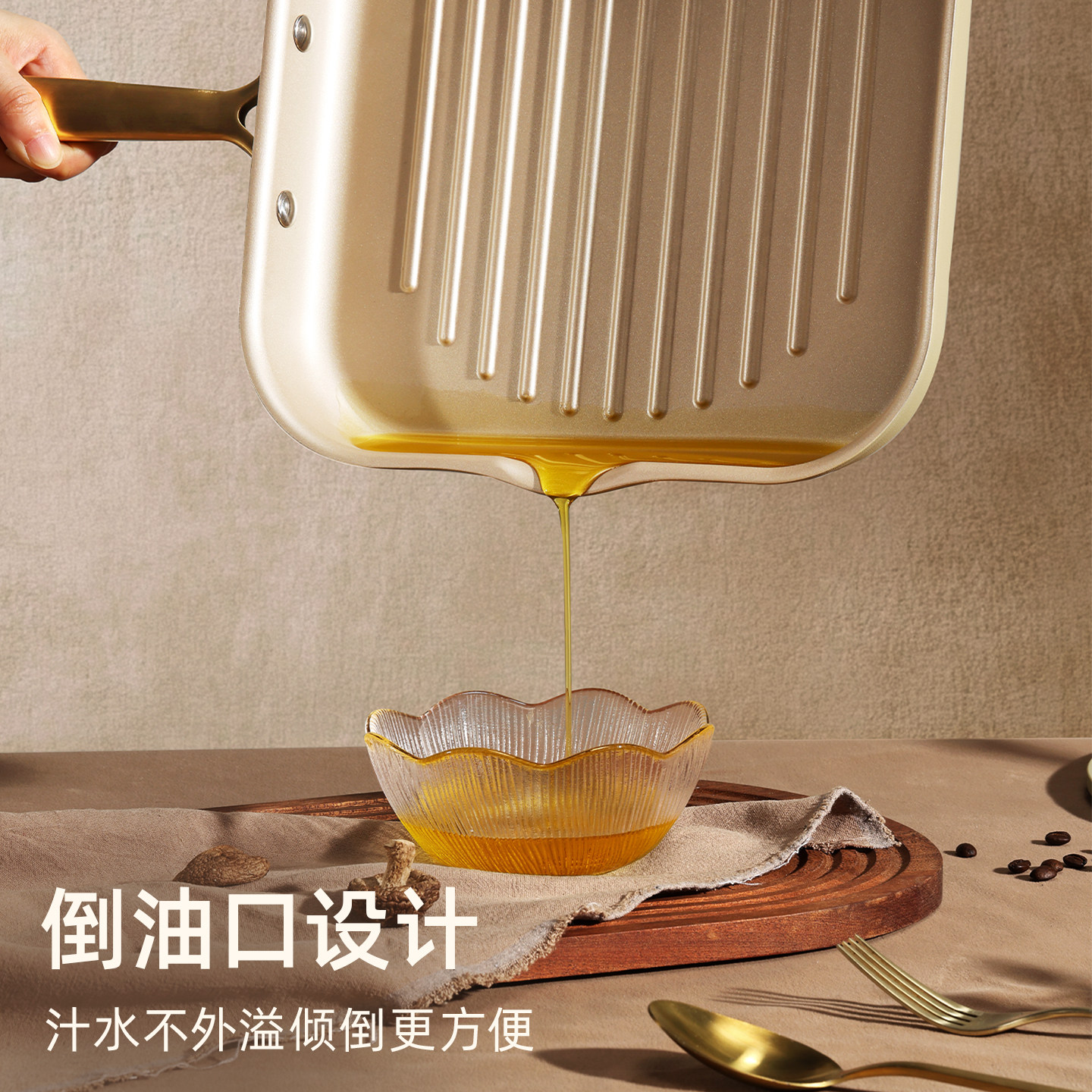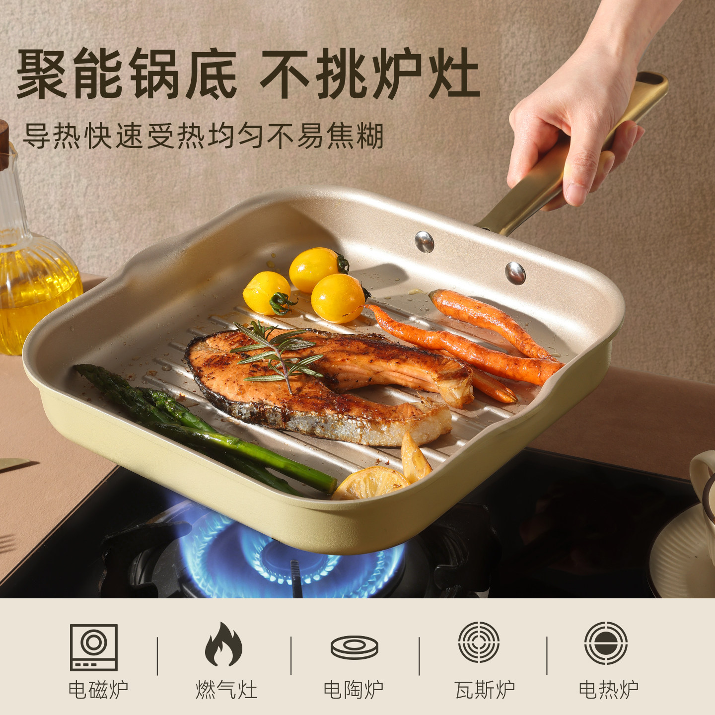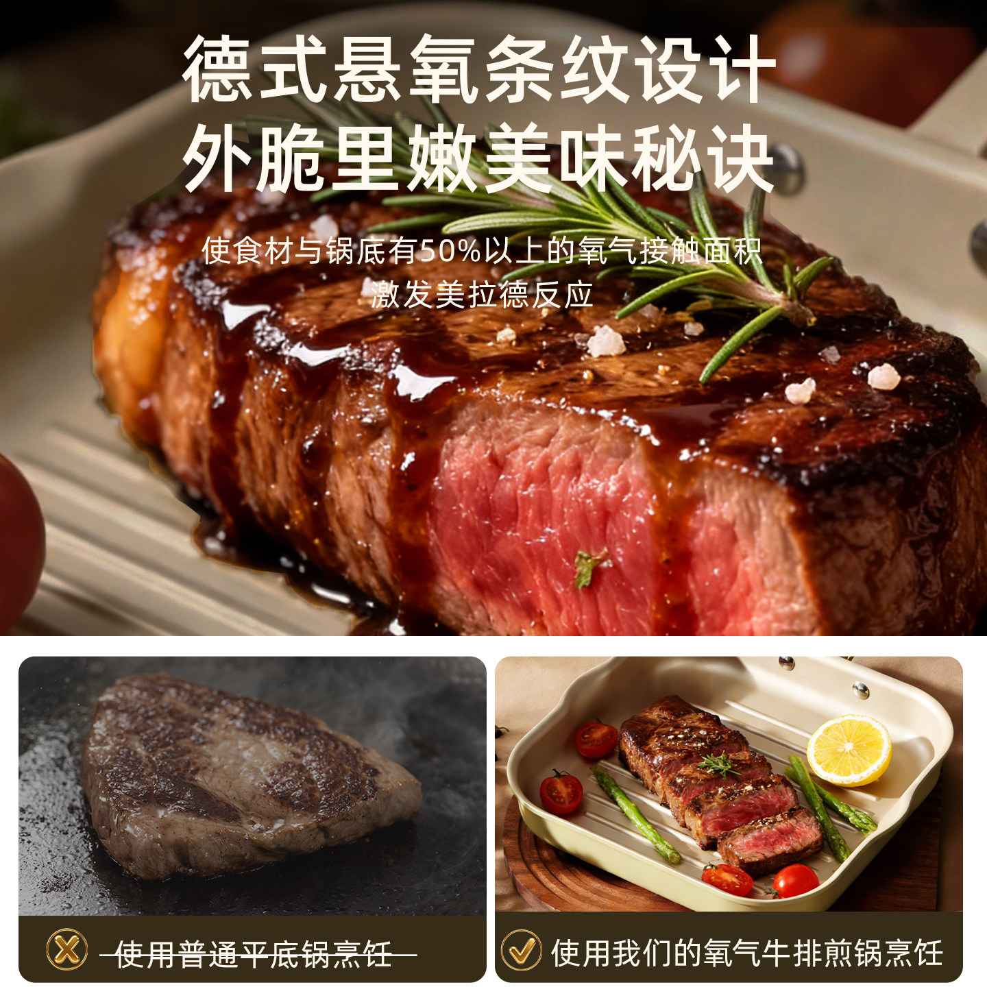 卡罗特牛排锅不粘锅煎牛排专用锅平底锅家用牛扒煎锅燃气灶电磁炉