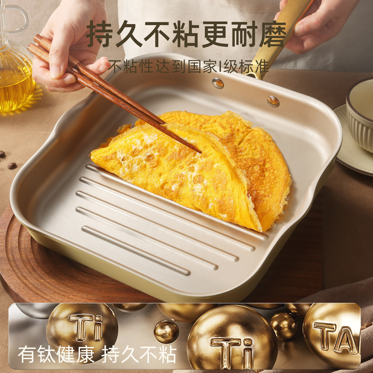 钛红芯控温平底锅不粘锅家用无涂层炒菜煎蛋牛排电磁炉专用深煎锅