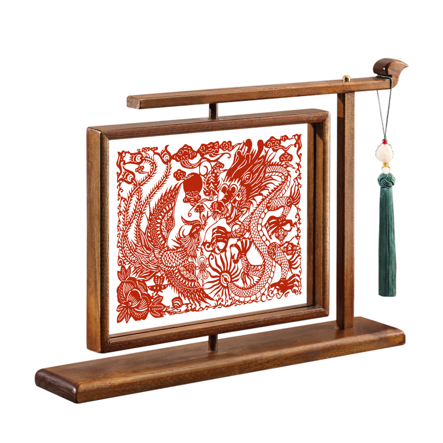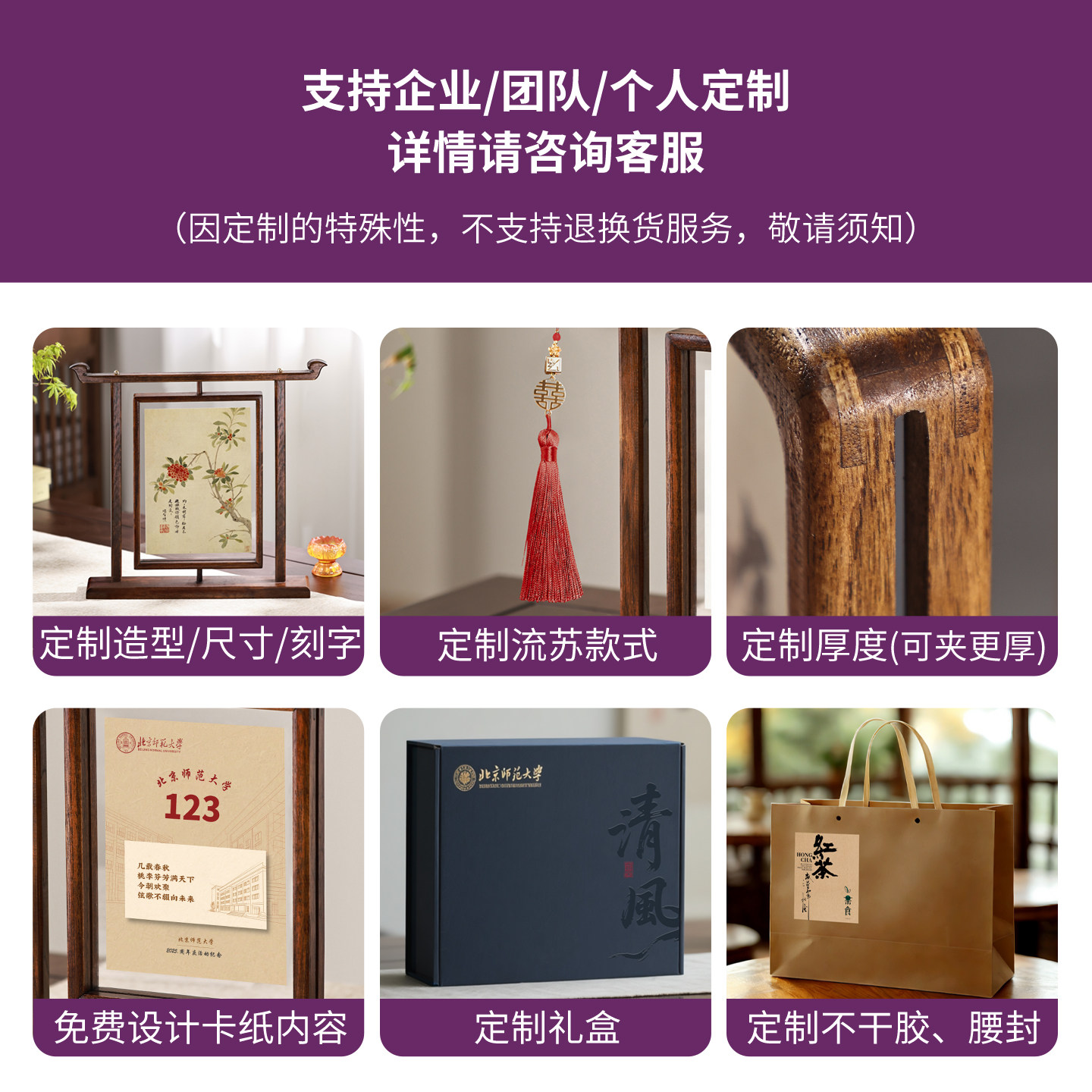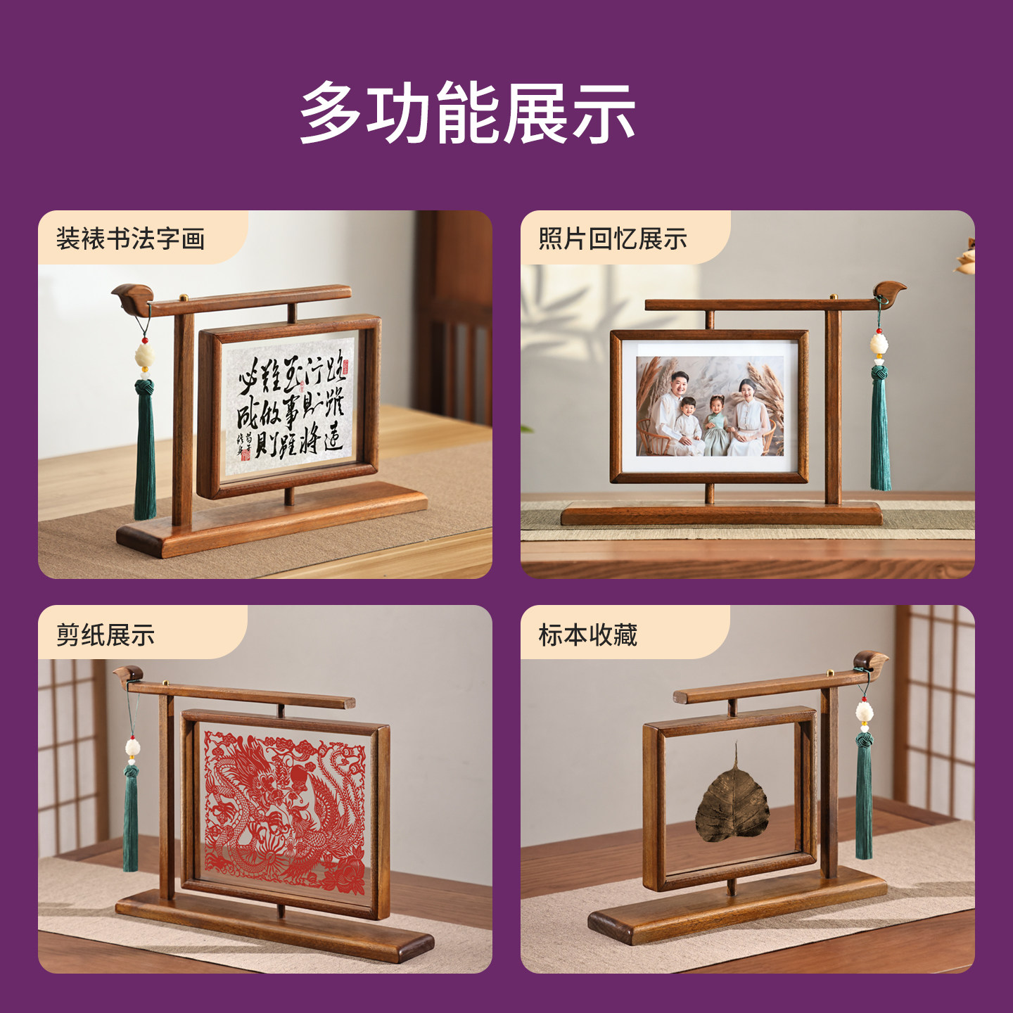 异丽中式实木相框旋转摆台复古装饰摆件双面透明照片书法装裱画框