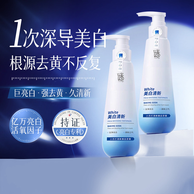 小苏打牙膏清新美白去黄去口臭速效除异味口气含氟成人正品按压式