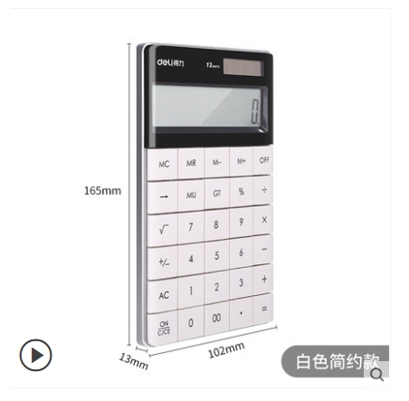 得力计算器轻薄机身时尚平板桌面计算器1589纽扣电池太阳能双电源