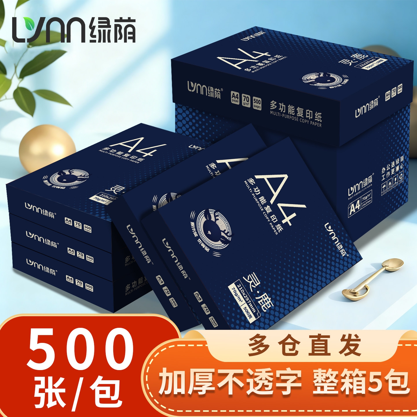 新绿天章A4纸打印复印纸a4 70g80克500页白纸 办公草稿纸整箱乐活