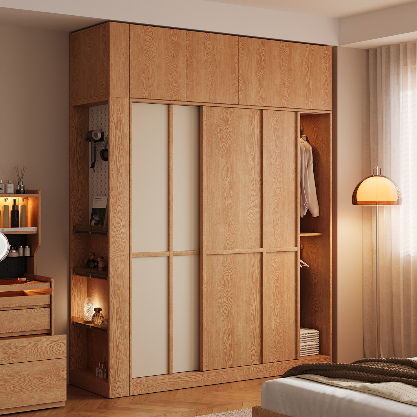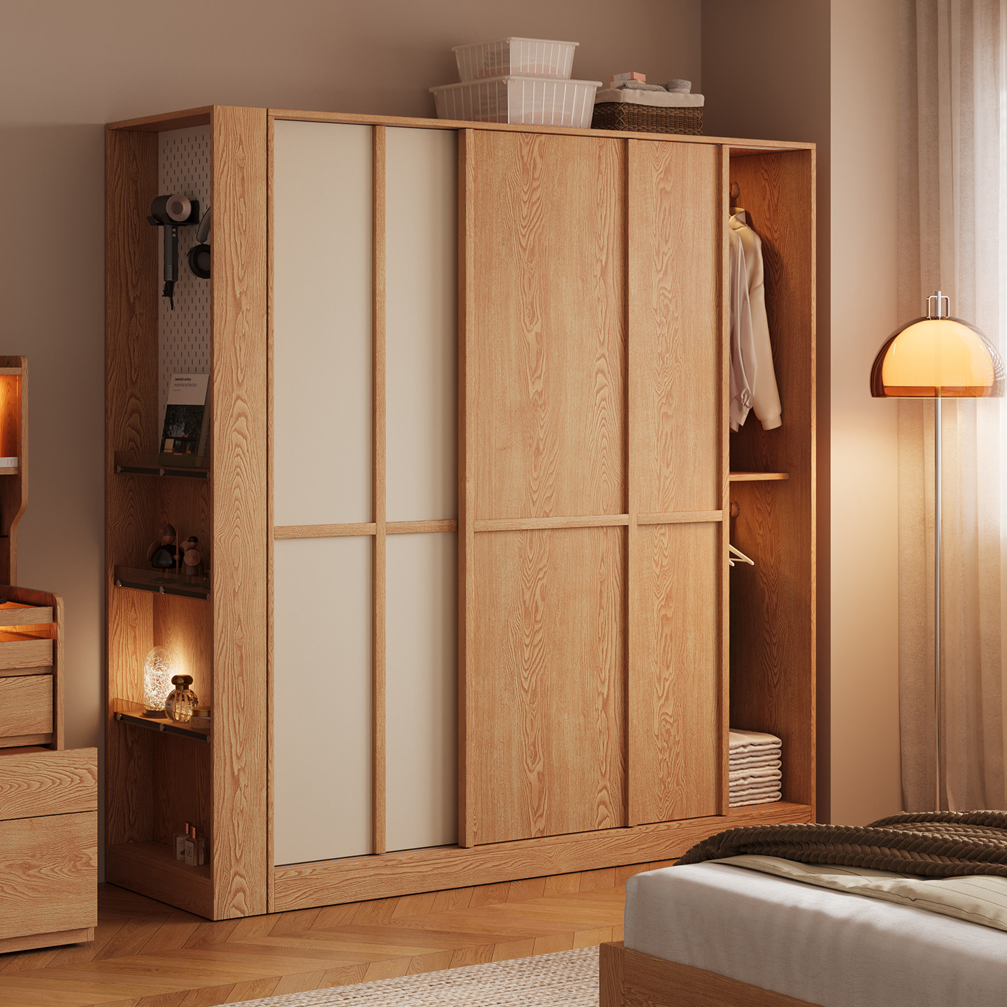 木兜家具格序衣柜实木推拉门柜子卧室家用原木风骨骼线移门大衣橱