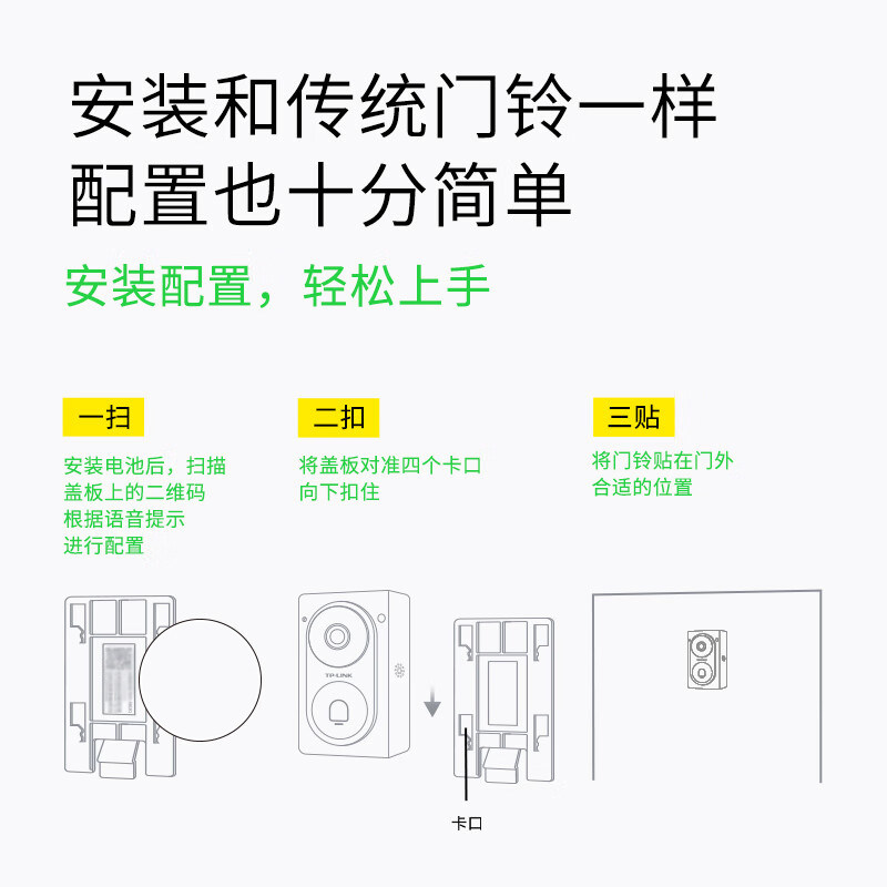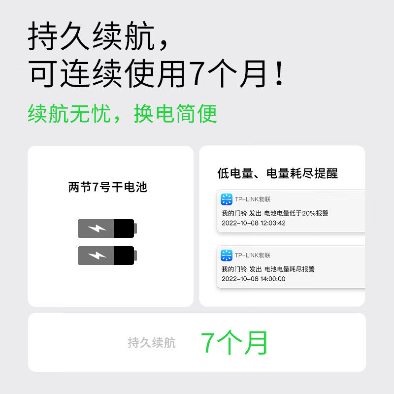 普联TP-LINK可视门铃摄像头家用智能电子猫眼门口监控录像感应器远程电话对讲入户wifi无线电池门铃TL-DB13C