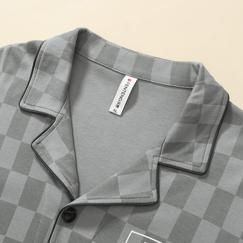 芬腾【商场款】纯棉男士睡衣春秋款长袖长裤全棉双面厚款家居服套