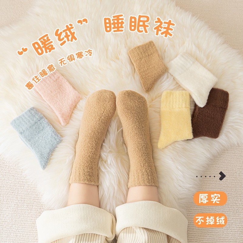 儿童袜子冬季加绒加厚水貂绒珊瑚绒中筒女童秋冬款宝宝保暖毛巾袜
