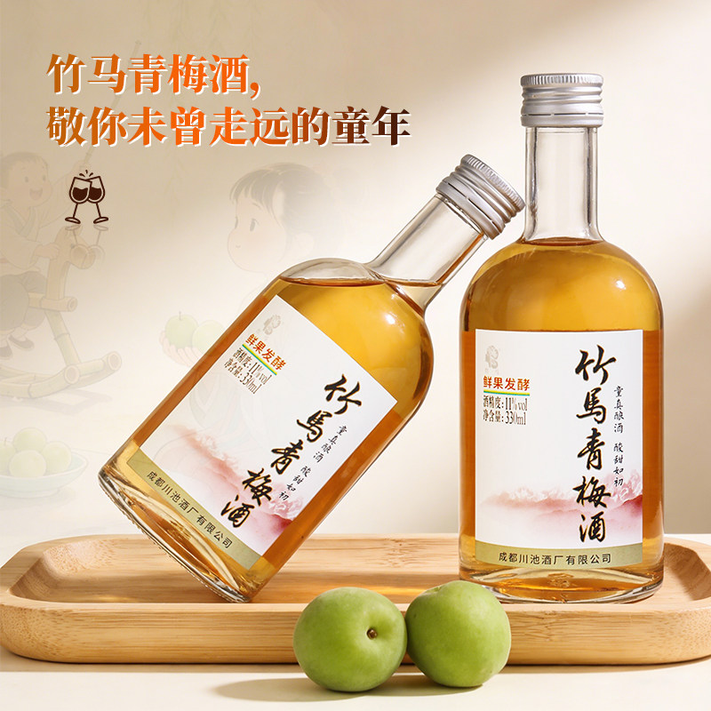 竹马青梅酒鲜果发酵11度低度半甜型果酒330ml微醺少女聚会小酌