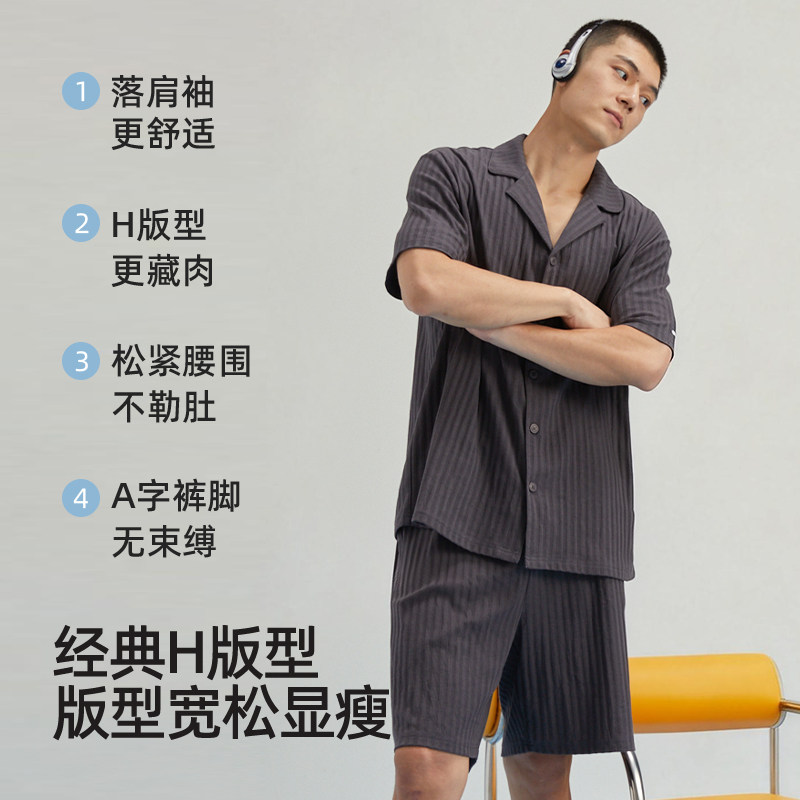 幸棉睡衣男款夏舒适棉质情侣睡衣短袖短裤宽松5A抗菌可外穿家居服