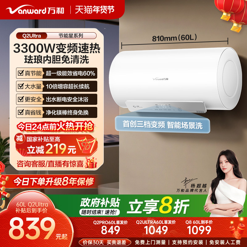 [政府补贴]万和官方电热水器Q2Ultra出水断电洗澡家用一级能效Q8