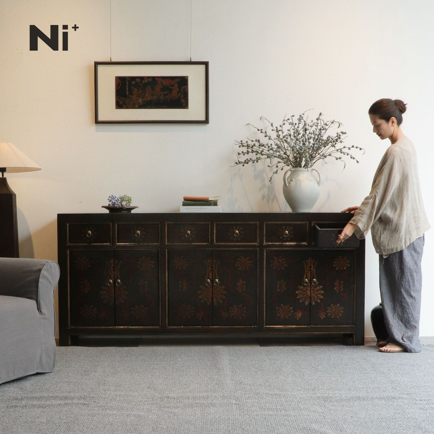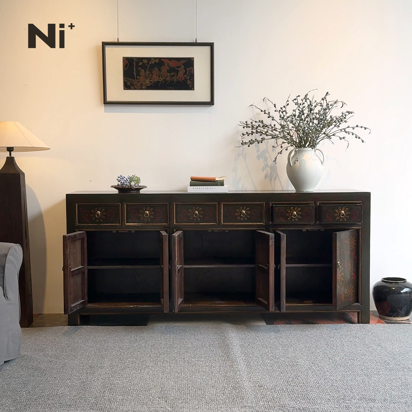 Ni+尼家南洋复古风柜子实木斗柜中古风客厅餐边柜玄关柜入门鞋柜