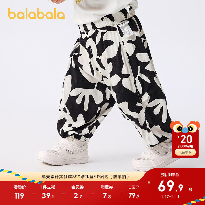 巴拉巴拉童装儿童裤子女童长裤2025夏薄款童装宝宝碎花防蚊休闲裤