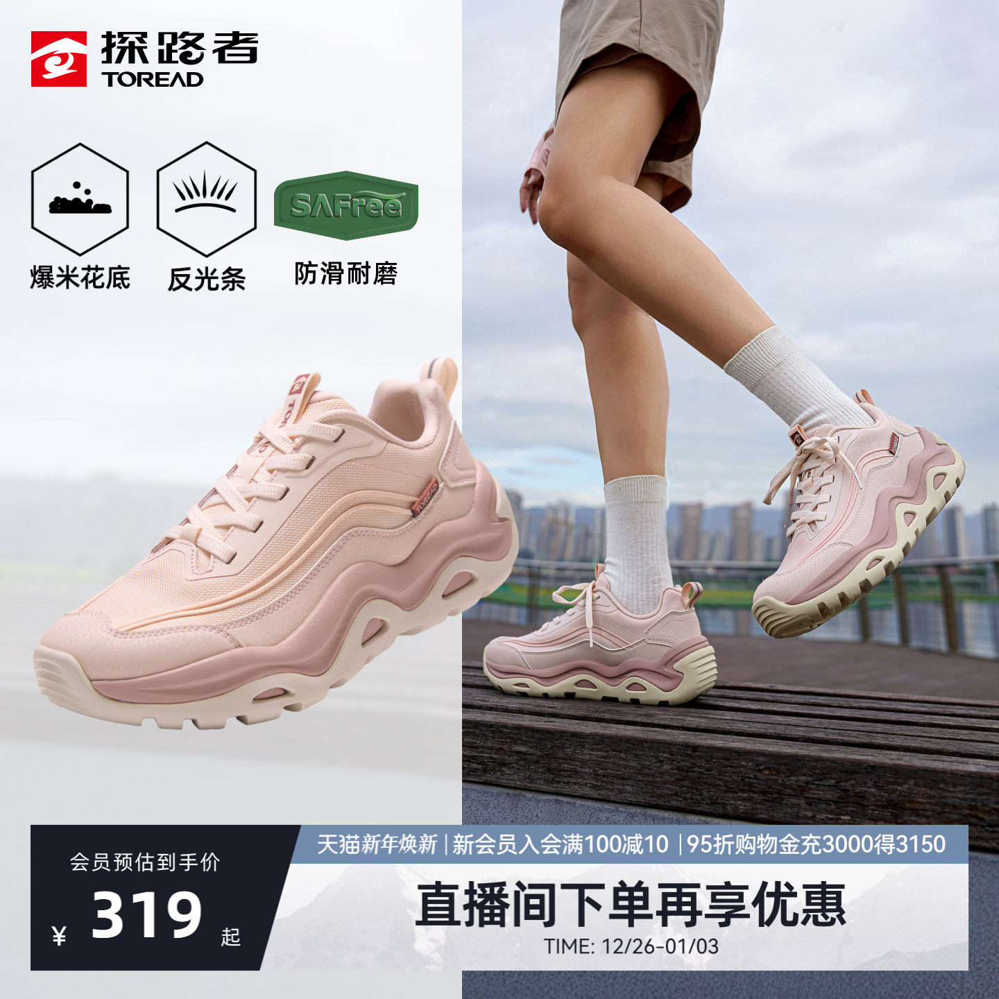 探路者2025新款男女休闲鞋防泼水防滑时尚老爹鞋运动鞋