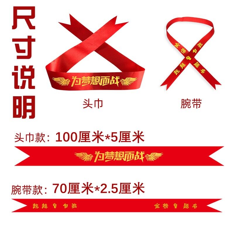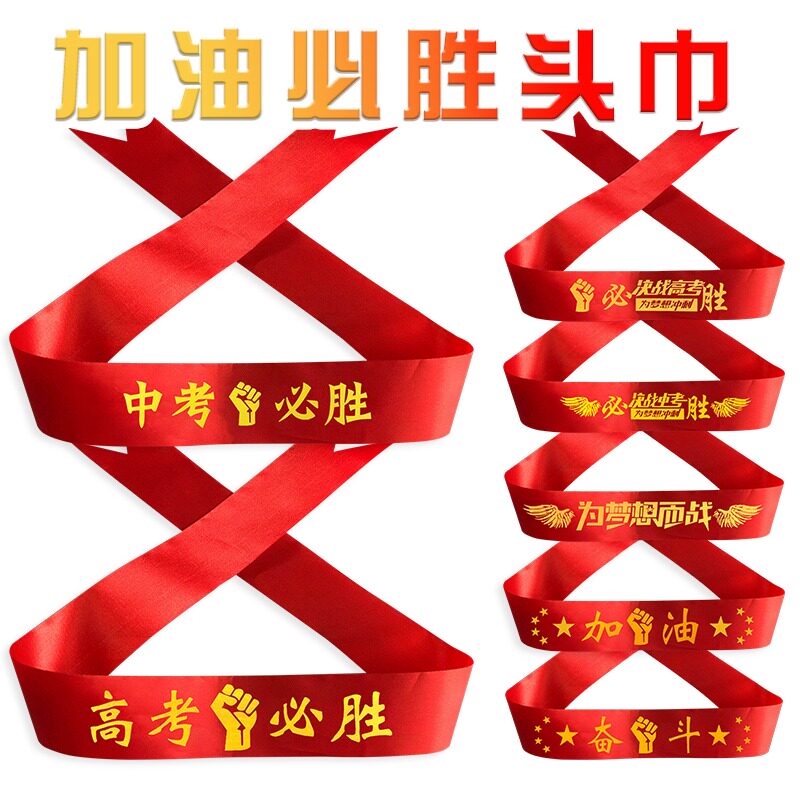 高考头巾头带中考必胜百日誓师加油拼搏必胜红丝带绸带励志助威打气学生中高考必胜头绳比赛活动团建头饰红布
