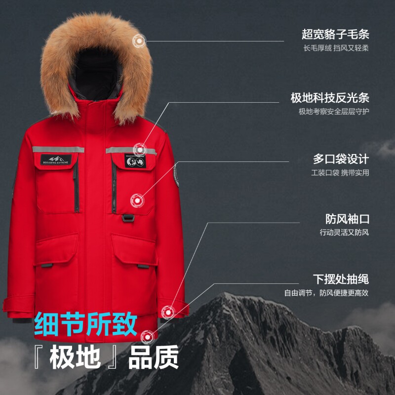 新年红色波司登极地极寒户外毛领加厚保暖90鹅绒羽绒服女男25新款