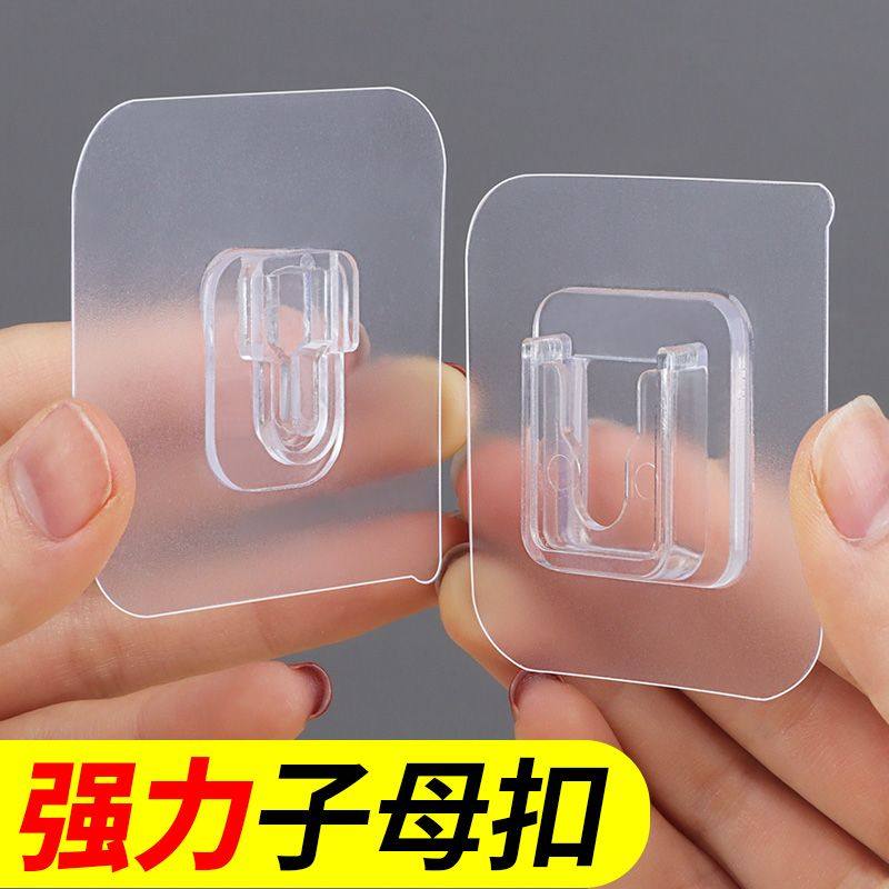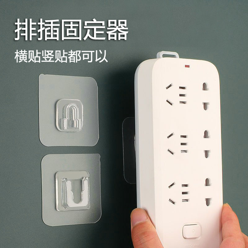 子母扣排插固定器墙壁免打孔无痕粘钩挂钩壁挂强力粘胶置物架卡扣