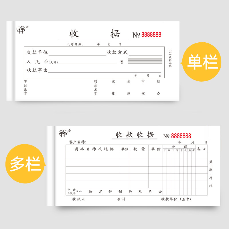 强林收据收款收据单栏多栏二联三联收料单领料送货出库入库单两联现金收剧单据锯无碳复写餐饮财会财务用品