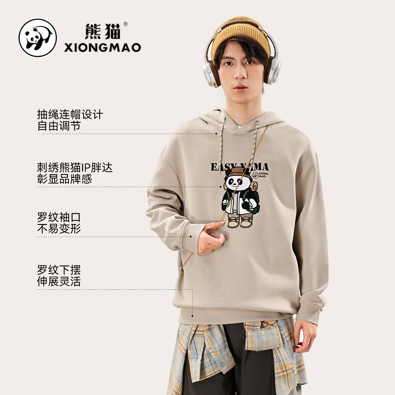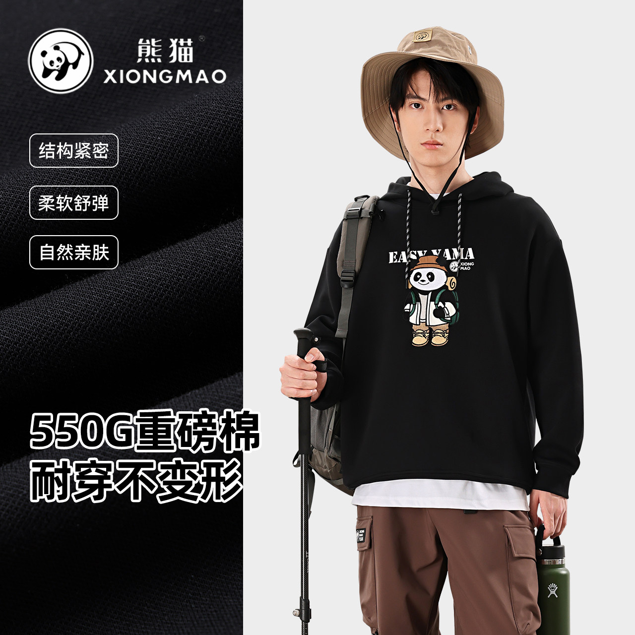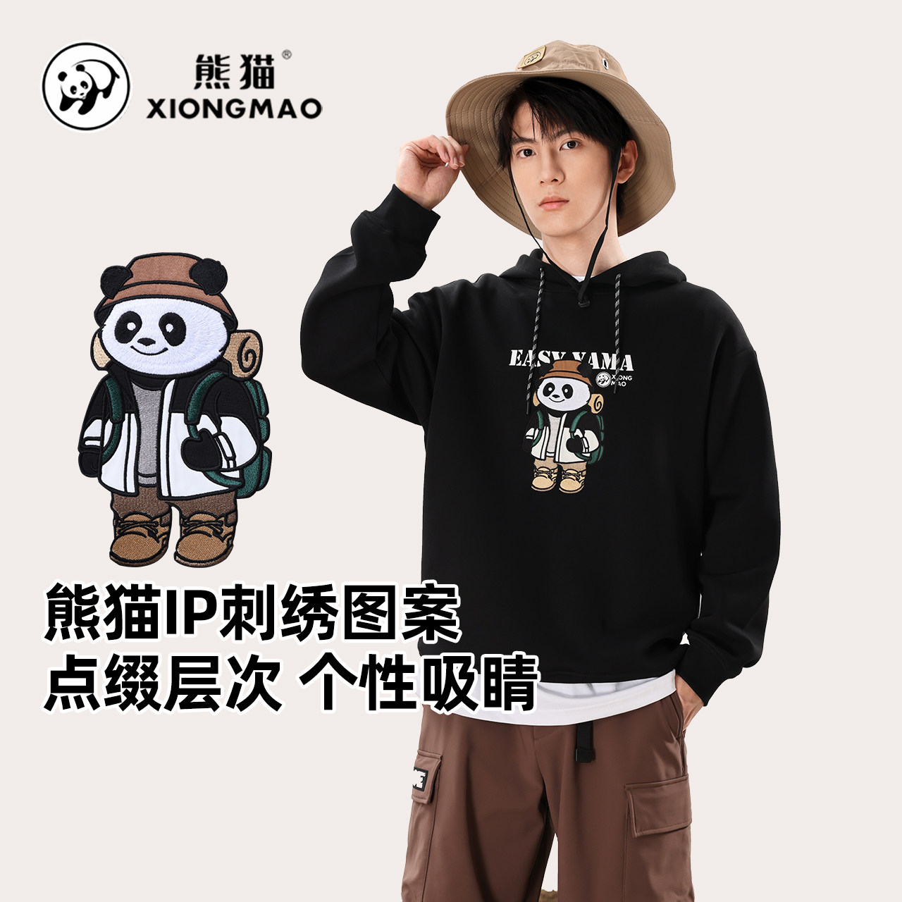熊猫IP刺绣图案卫衣女24新款卡通休闲时尚百搭550G重磅宽松上衣
