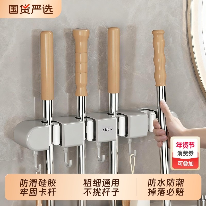 拖把壁挂收纳架免打孔挂扫把拖把夹挂钩固定架卫生间墙上神器厨房