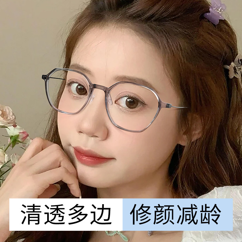网上配镜近视眼镜女超轻纯钛素颜多边形眼睛框镜架可配有度数镜片