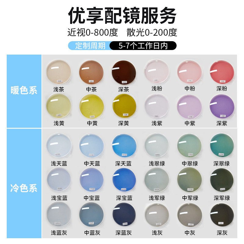 定制近视太阳眼镜片可配度数彩色树脂镜片防蓝光防紫外线茶色墨镜