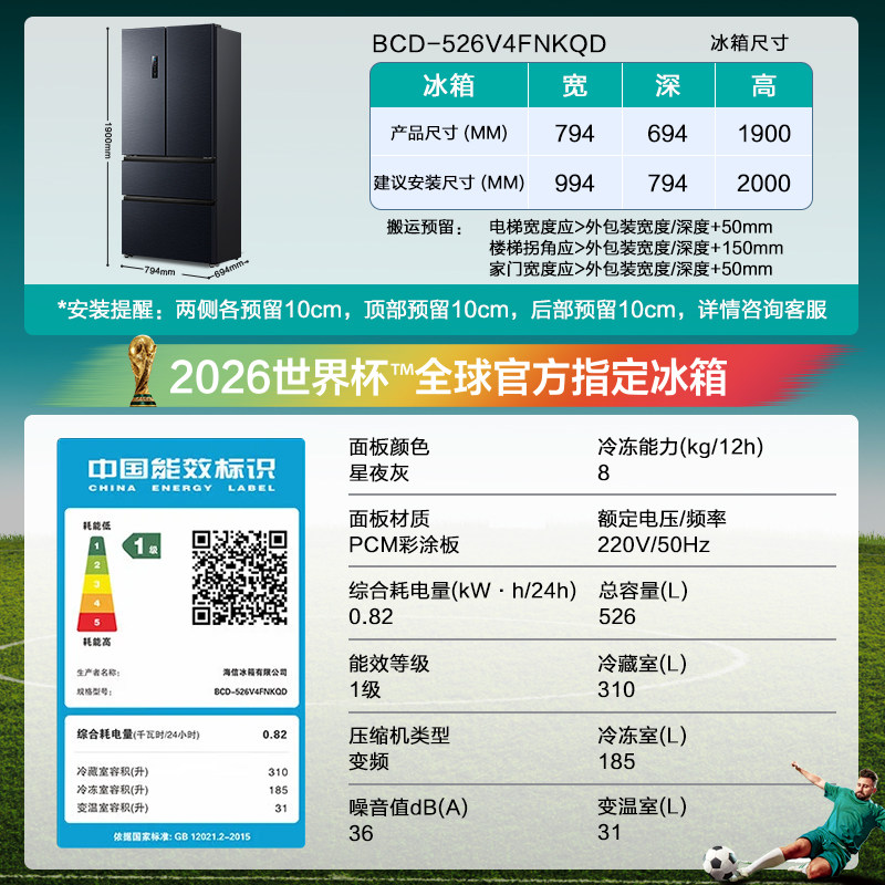 海信小榴莲526L电冰箱真空保鲜四开门法式双系统家用一级换新补贴