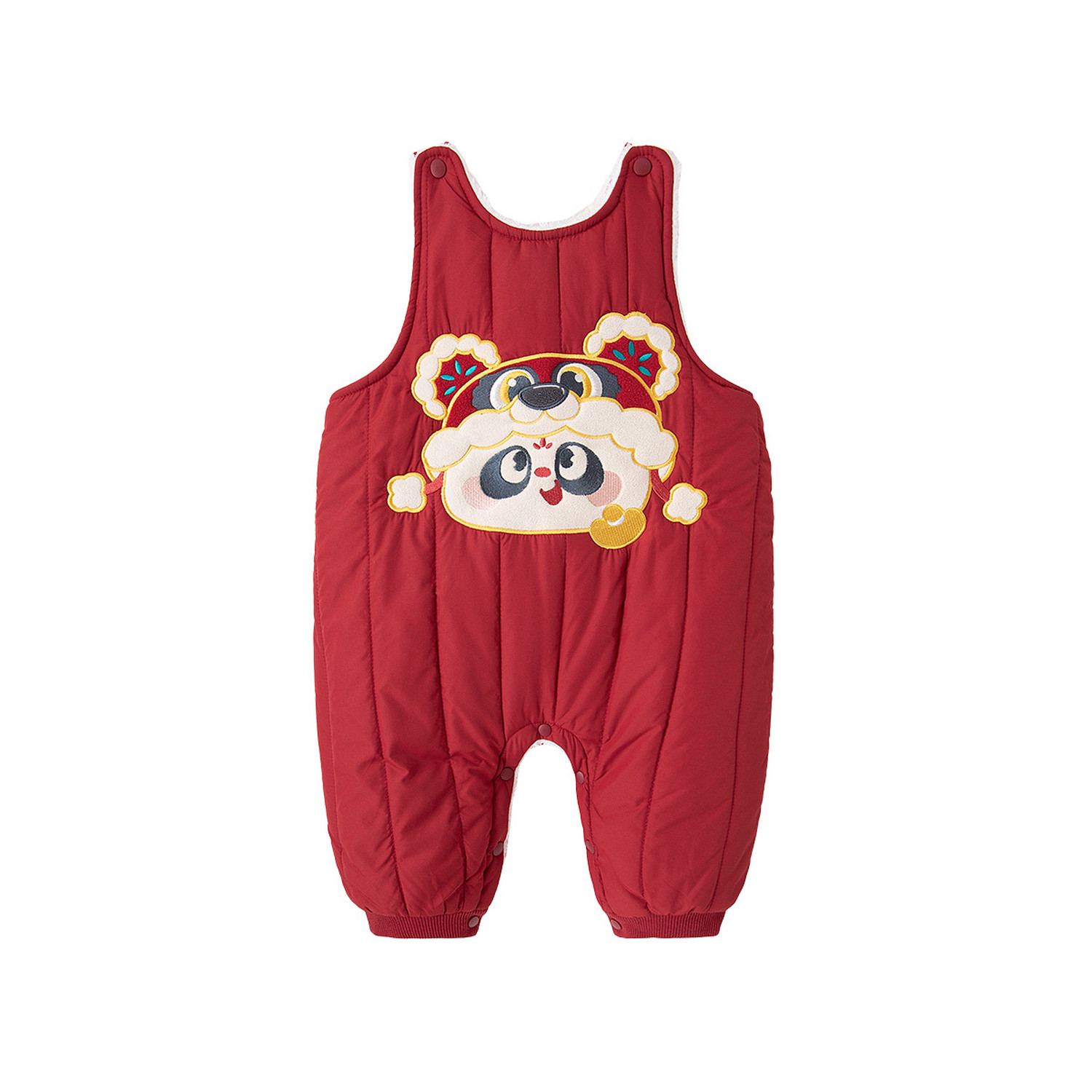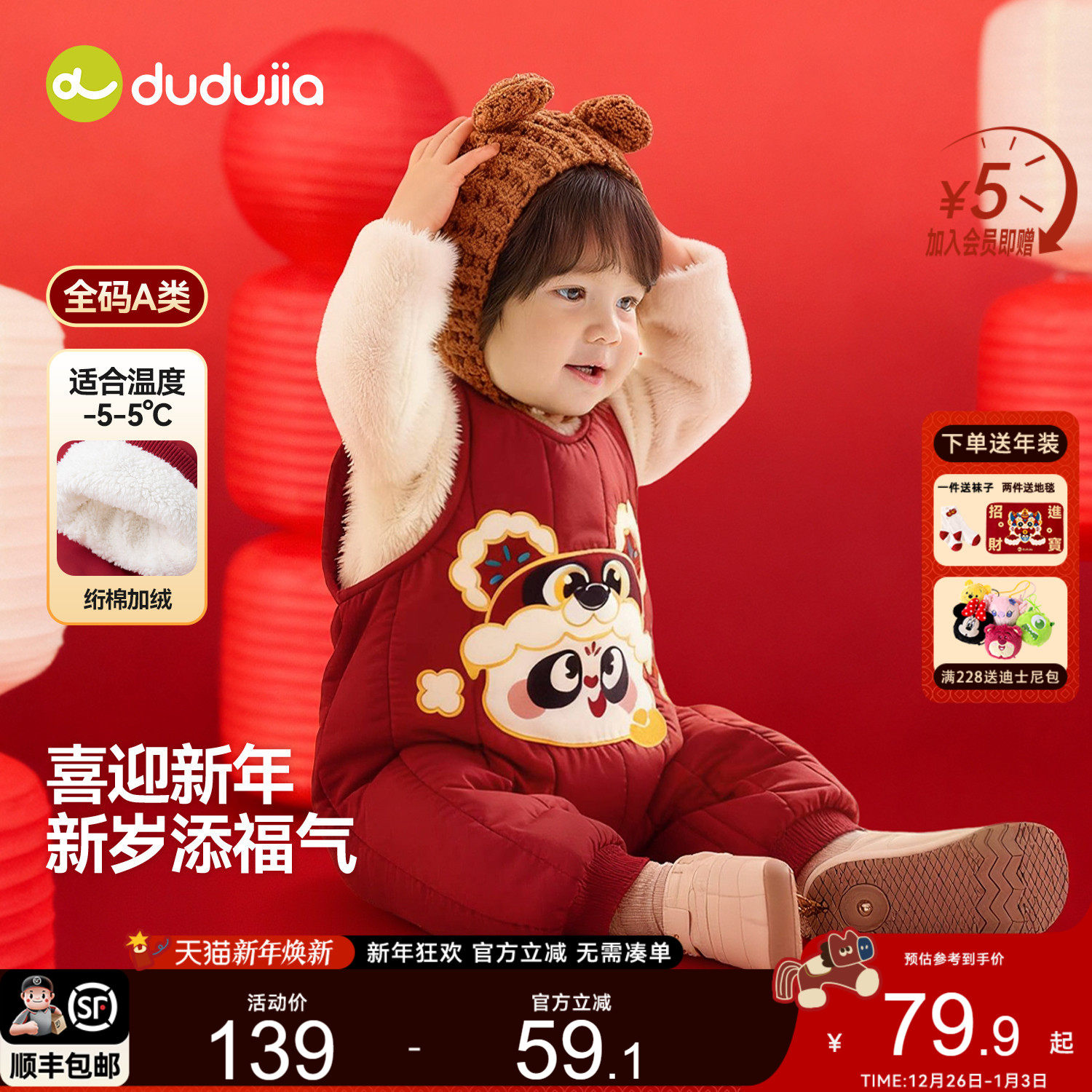 dudujia宝宝周岁礼服冬季儿童背带裤红色婴儿哈衣拜年服新生年装a