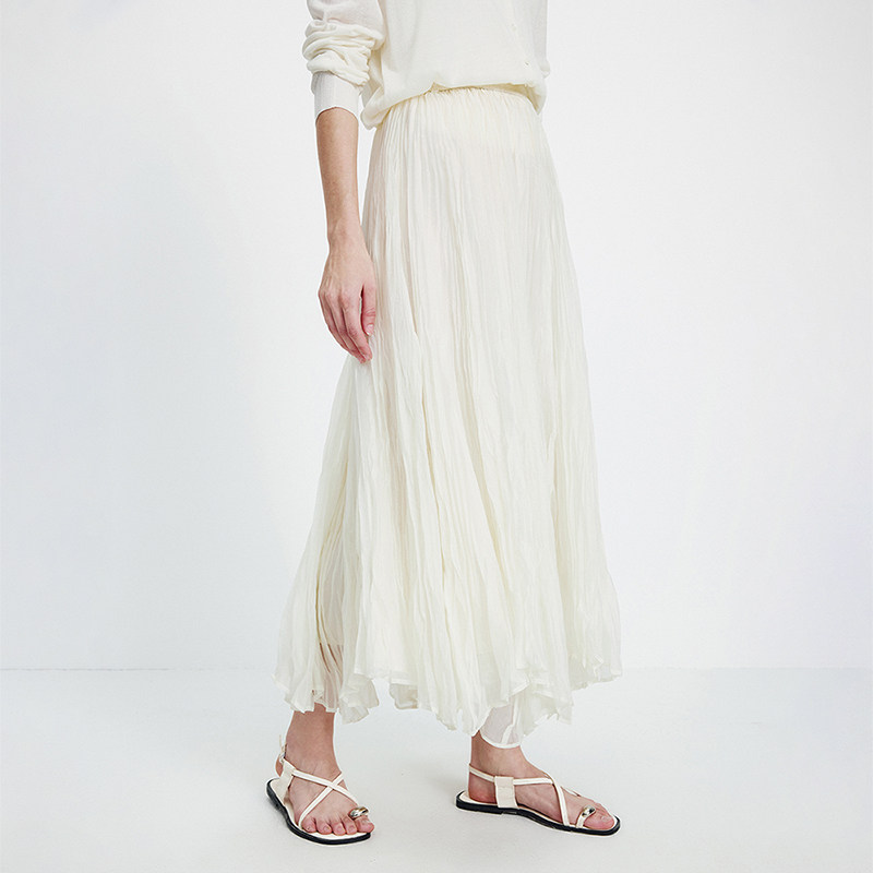 她池松紧腰百褶裙2025秋装新款女装时尚简约中长款A字高腰半身裙