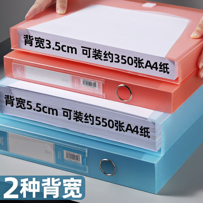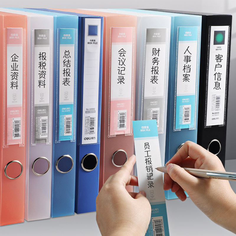 得力A4档案盒彩色透明塑料磨砂透明大容量加厚55mm党建资料盒人事档案文件夹凭证盒合同收纳会计文书办公用品