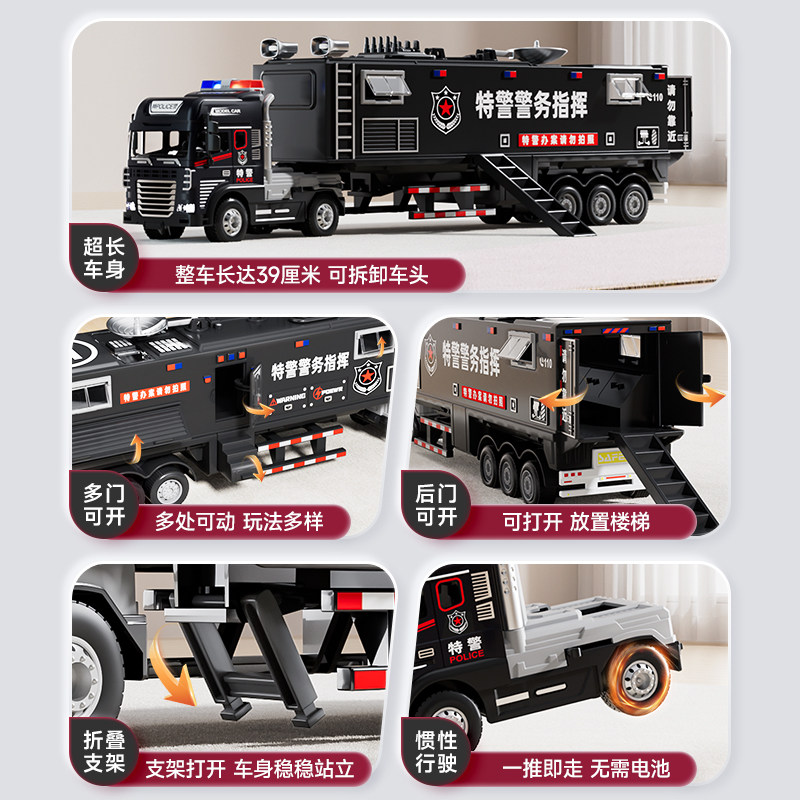 儿童大号合金警车消防指挥车惯性玩具车可拆卸车头仿真汽车模型男