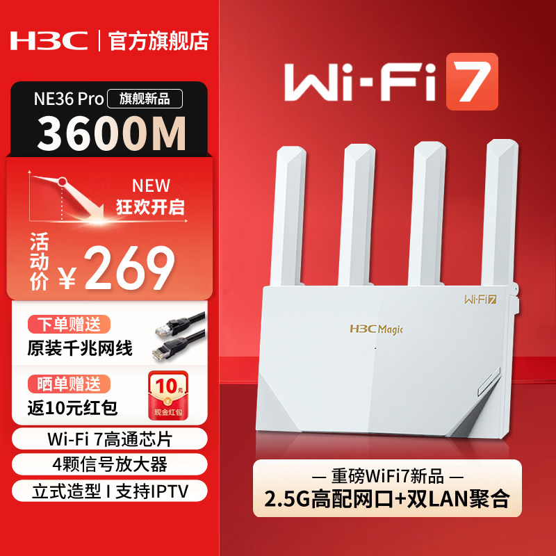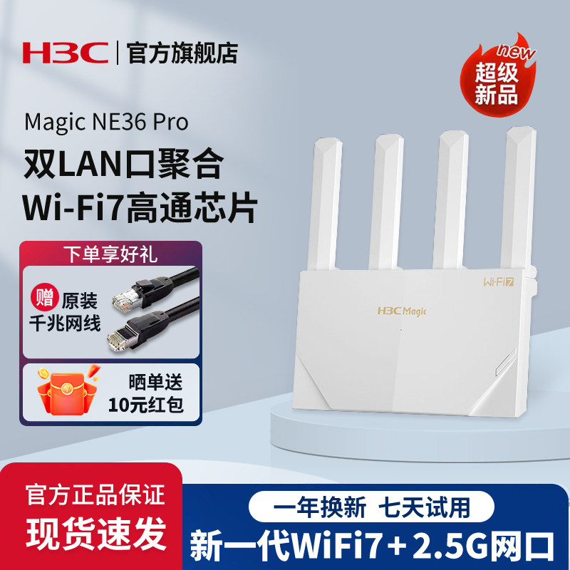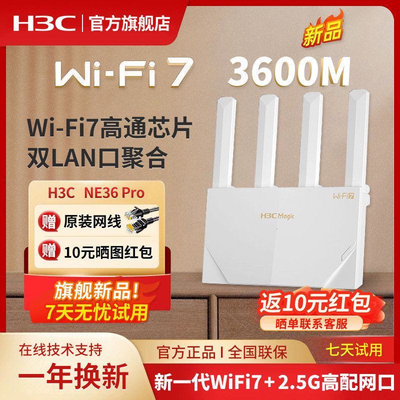 H3C新华三 BE3600双频无线路由器WiFi7全屋覆盖游戏加速2.5G网口千兆家用高速大户型穿墙mesh组网NE36Pro