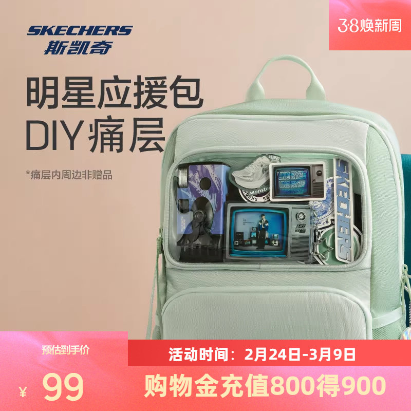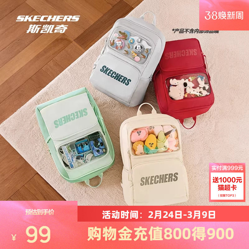 斯凯奇小痛包女包2026春季新品大容量双肩包透明背包学生书包娃包
