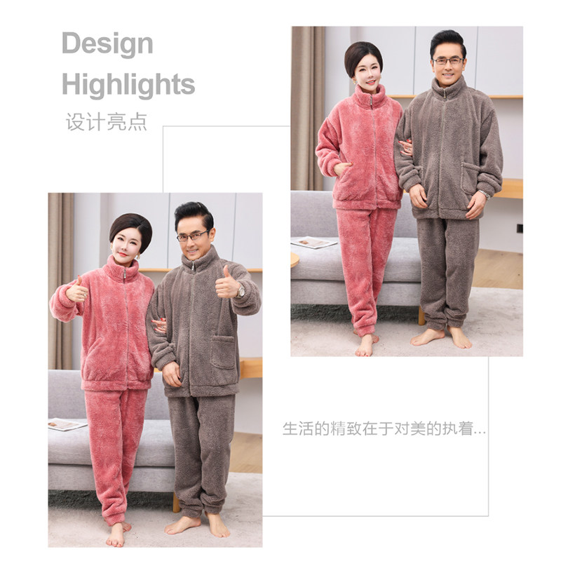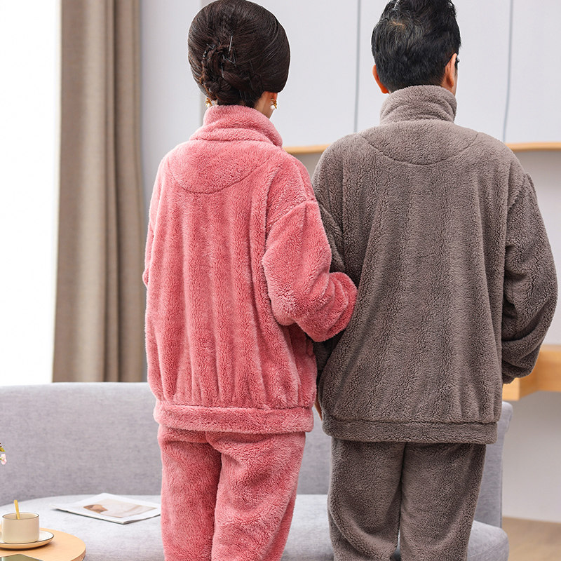 珊瑚绒睡衣男女士爸爸妈妈冬季款加绒厚中老年人法兰绒家居服套装