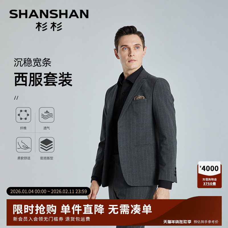 SHANSHAN杉杉西服套装男士秋季条纹结婚礼服正装商务休闲西装男