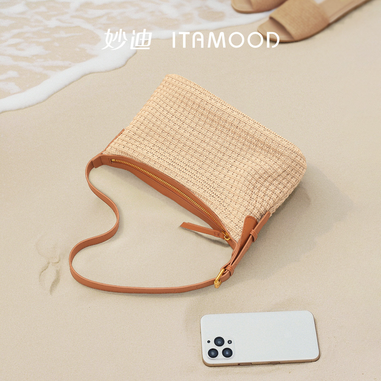 妙迪草编编织包新款女士度假风慵懒沙滩包高级感hobo单肩斜挎包包