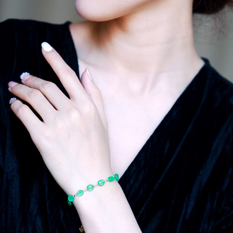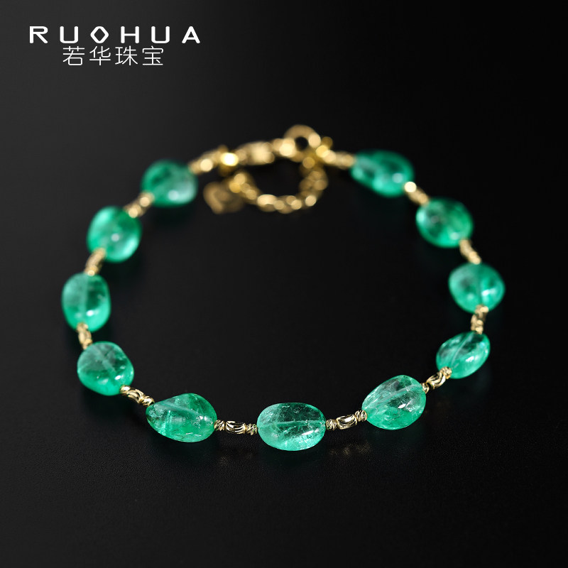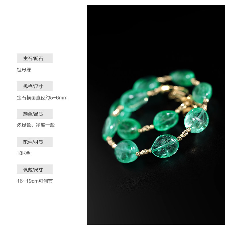 若华珠宝春霖=满天星哥伦比亚祖母绿手链女18K金彩宝手饰礼物定制