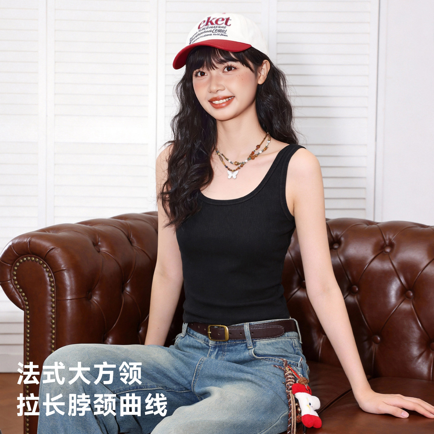 唐狮官方白色吊带背心女2026新款夏季辣妹内搭无袖方领显瘦上衣VC