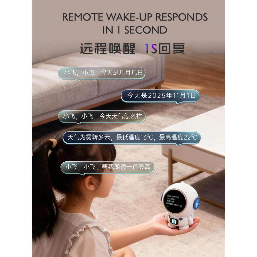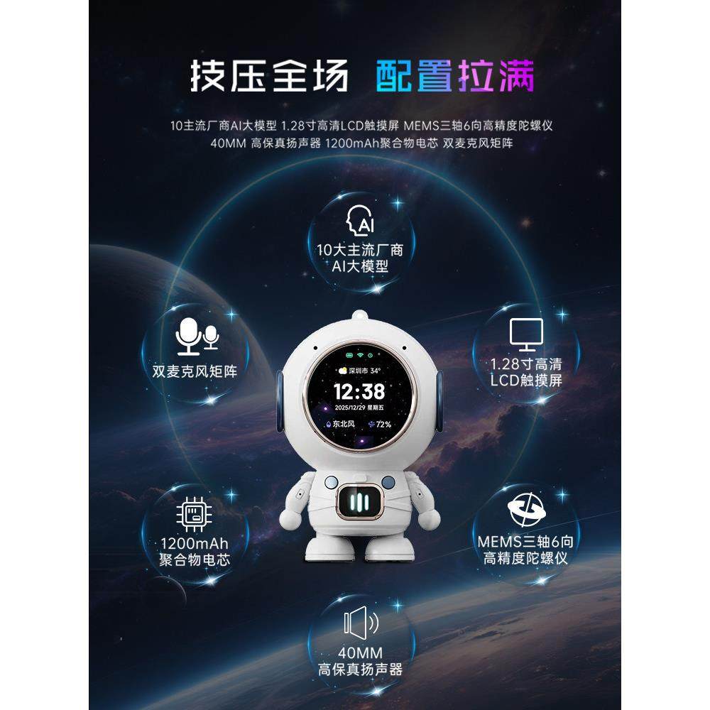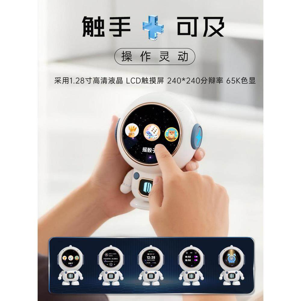 2026新款蓝牙音箱AI智能语音表情显示太空人造型时钟闹钟儿童音响