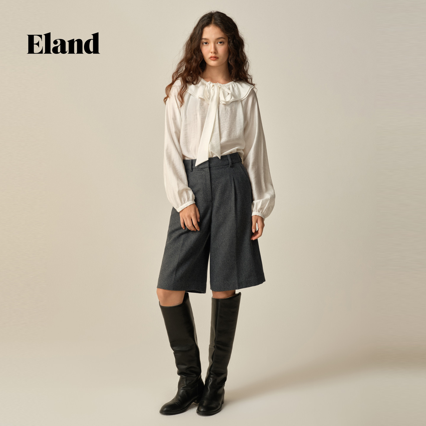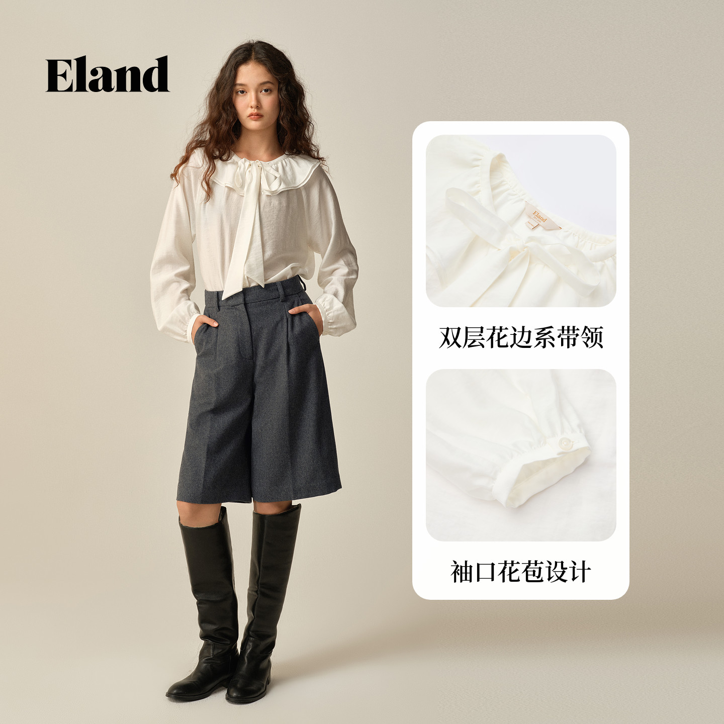 【莱赛尔】Eland衣恋衬衫女时尚荷叶领长袖飘带上衣2025冬季新款