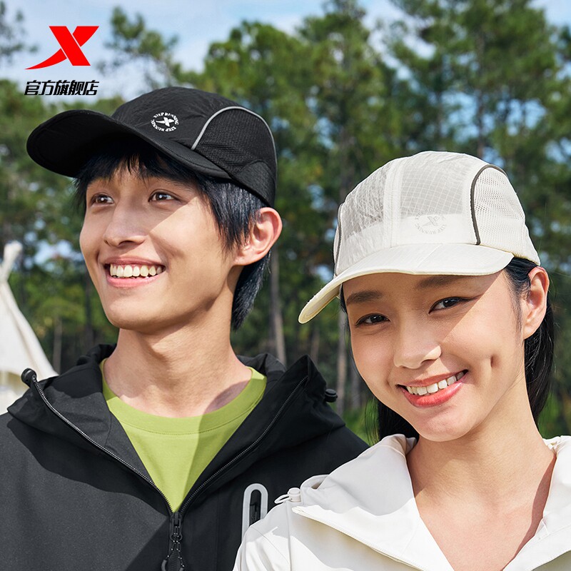 特步帽子男女透气棒球帽黑色运动帽大头围显脸小运动风遮阳防晒帽