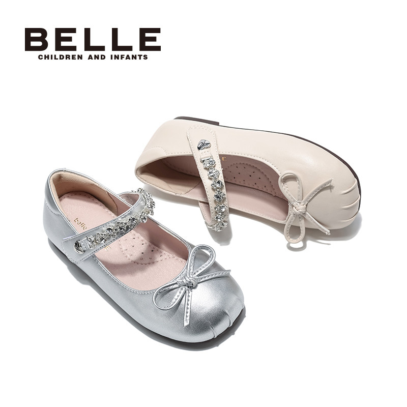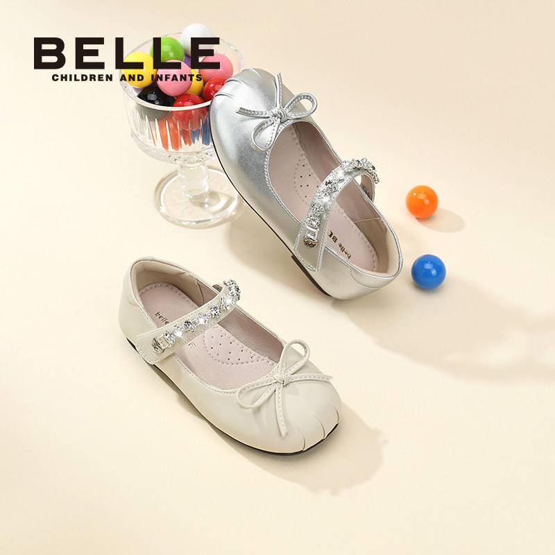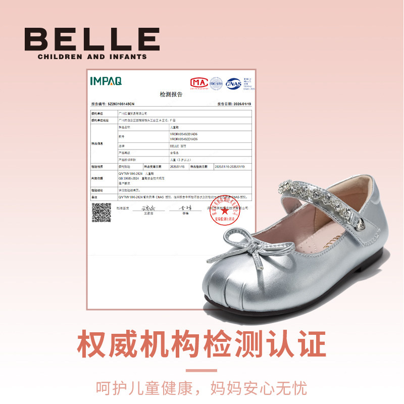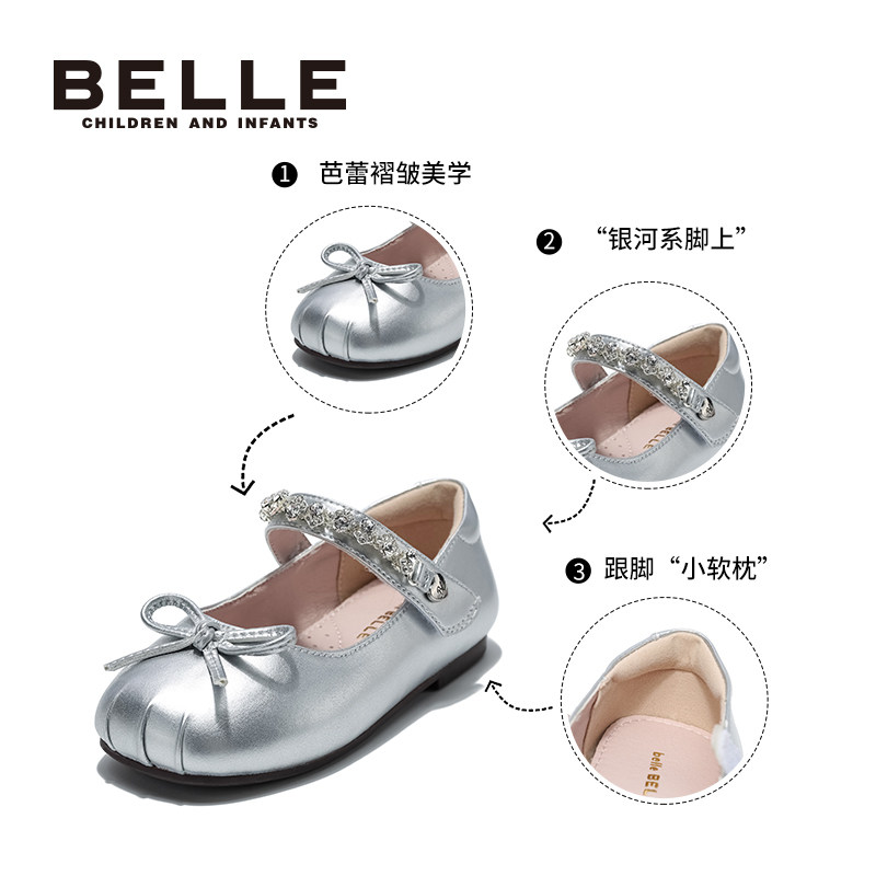 百丽童鞋小女孩公主鞋2026春季新品女童银色时尚单鞋儿童宝宝皮鞋
