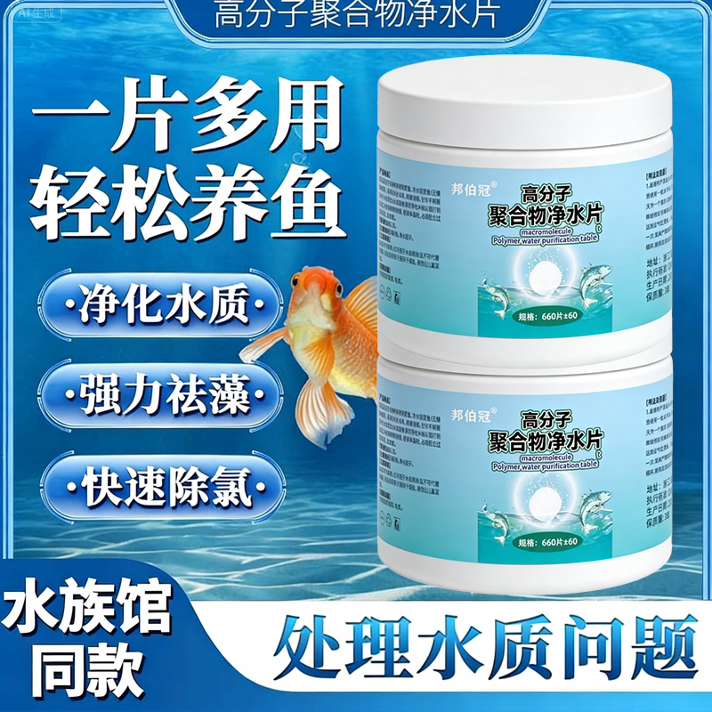 【水族馆同款】高分子聚合物净水片快速除氯除藻分解污物浑水变清