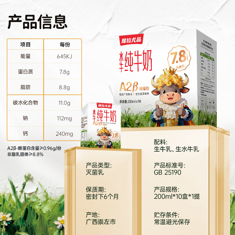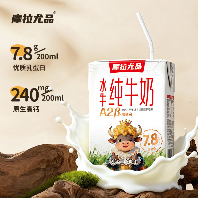 摩拉尤品A2β-酪蛋白水牛纯牛奶200ml*20盒家庭装儿童营养水牛奶