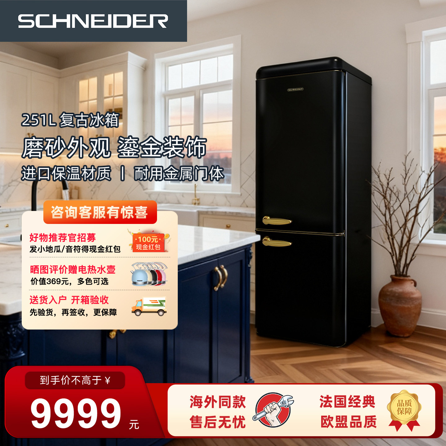 SCHNEIDER 251L磨砂复古冰箱双门家用大容量冷藏冷冻冰箱一级能效