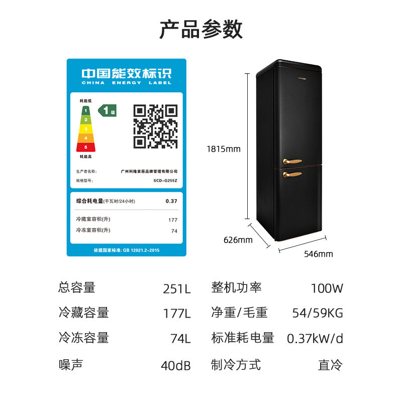 志高复古冰箱家用小型双门迷你节能省电宿舍租房冷藏冷冻一级能效