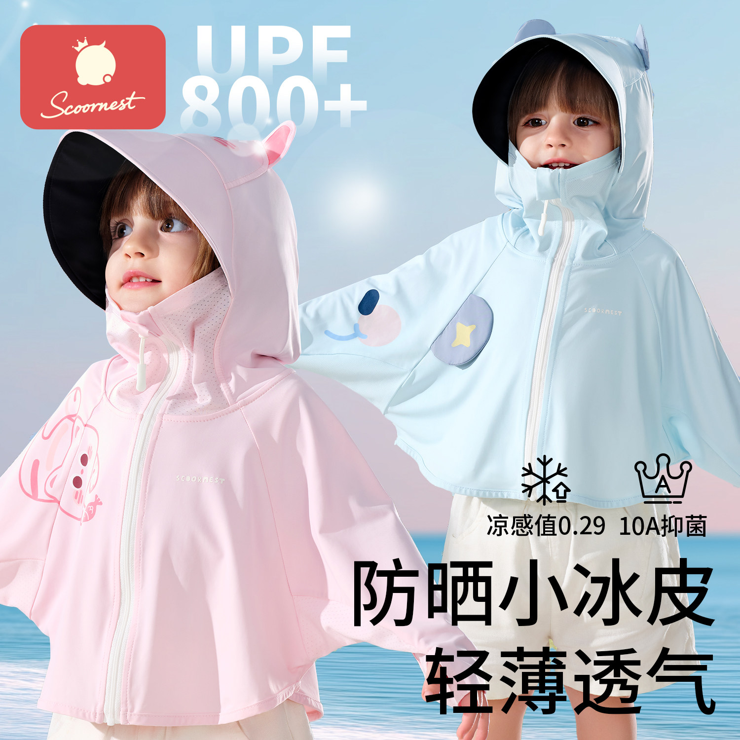 十月结晶粒粒阳光儿童防晒衣冰感斗篷夏日户外透气轻薄外套防晒服