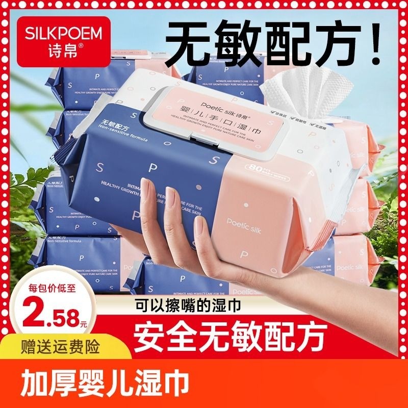 诗帛80抽婴儿湿巾纸新生宝宝幼儿童手口专用湿纸巾家庭大包装甄选
