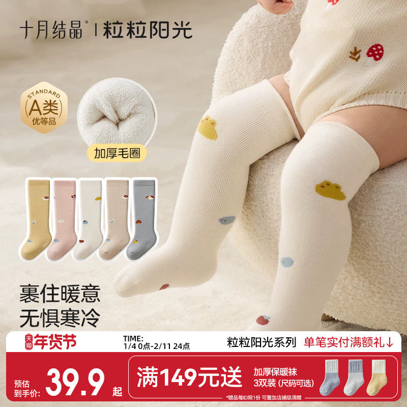 十月结晶粒粒阳光儿童袜子男童毛圈袜蓄热秋冬保暖厚女童婴儿袜子