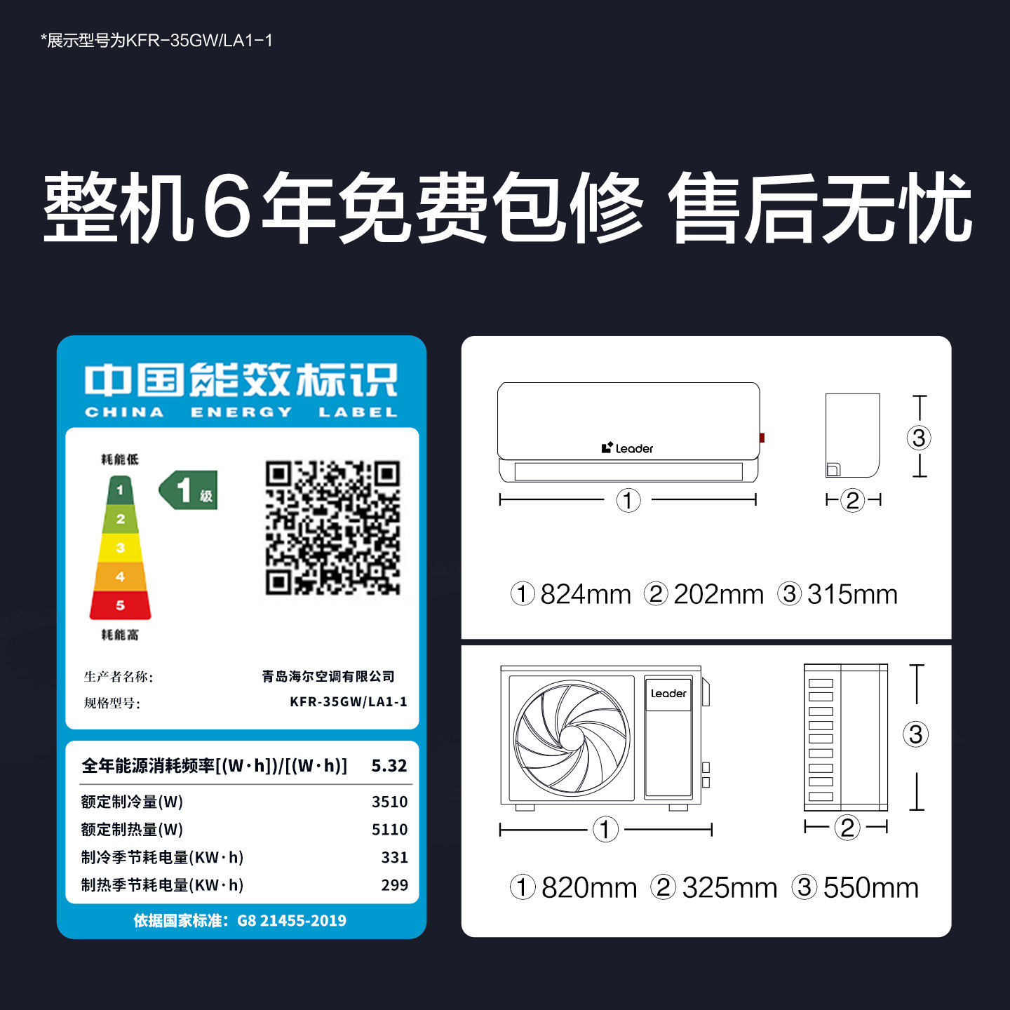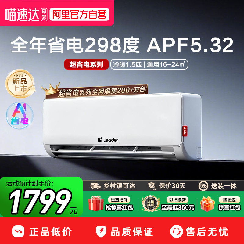 海尔小红花空调新一级能效1.5匹变频冷暖家用劲爽挂机35LCA