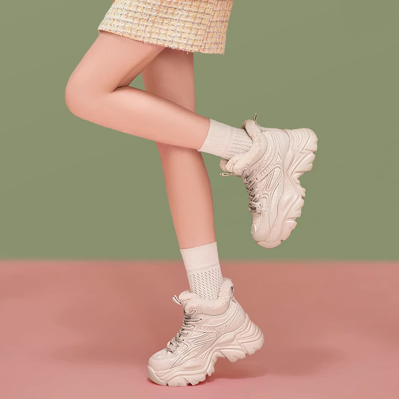 斯凯奇秋冬季女鞋复古高帮老爹鞋厚底增高休闲运动鞋靴柔软加绒靴