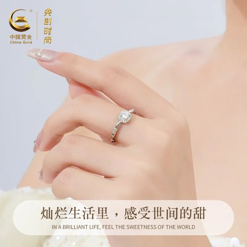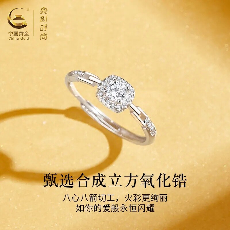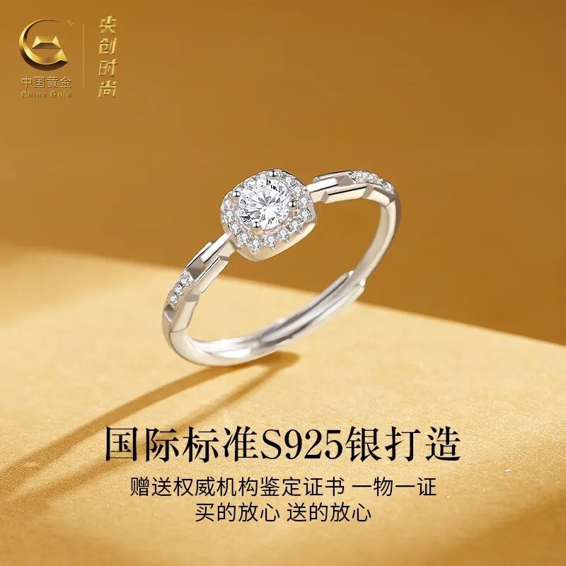 中国黄金央创纯银小方糖戒指女2025新款爆款轻奢小众设计指环S925
